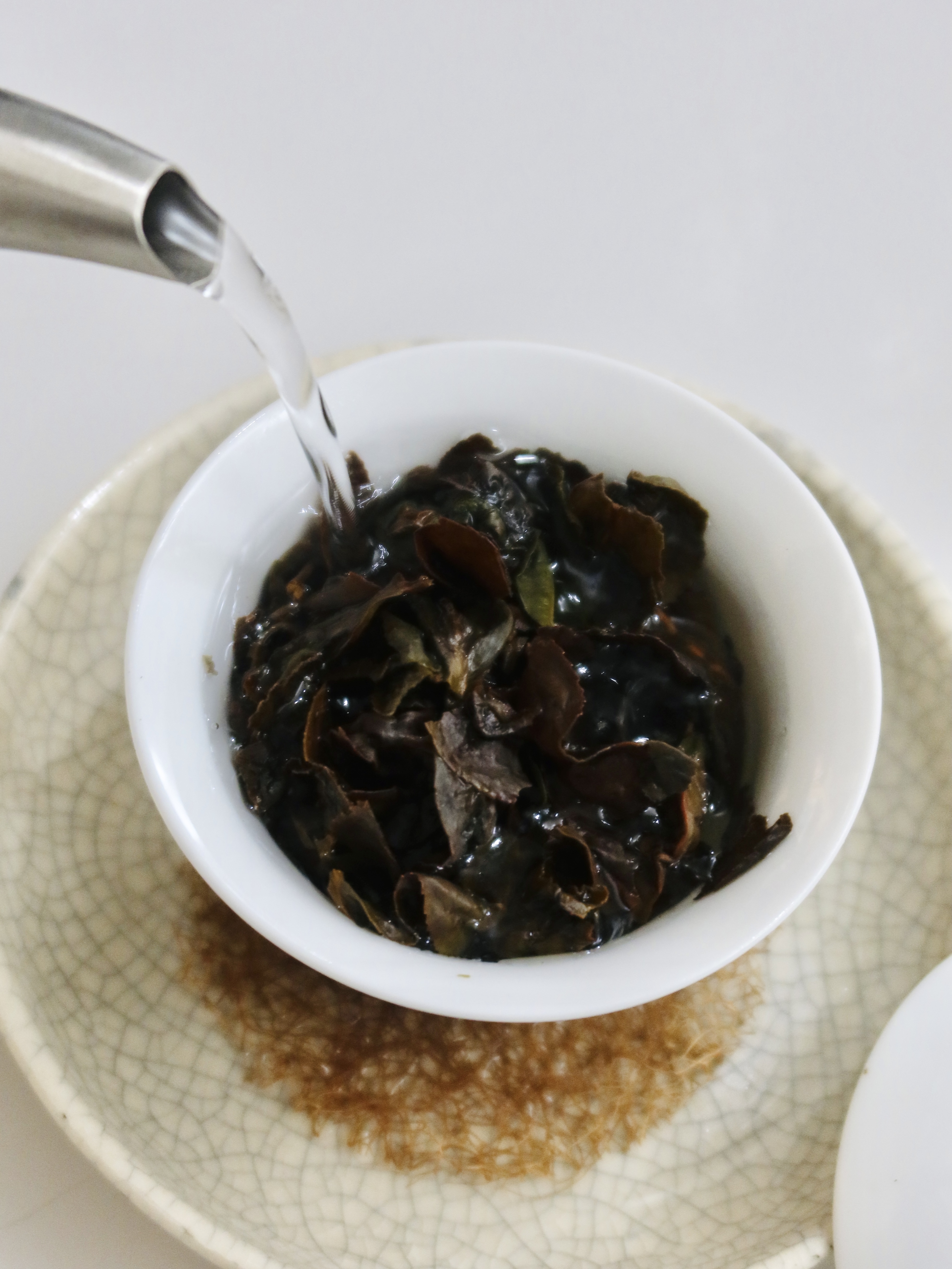 工藝:日光萎凋、做青(搖青、靜置)、攤一個小時後、抽真空充氮氣、殺青、揉捻、壓成方塊塑型、解散、包揉、乾燥
