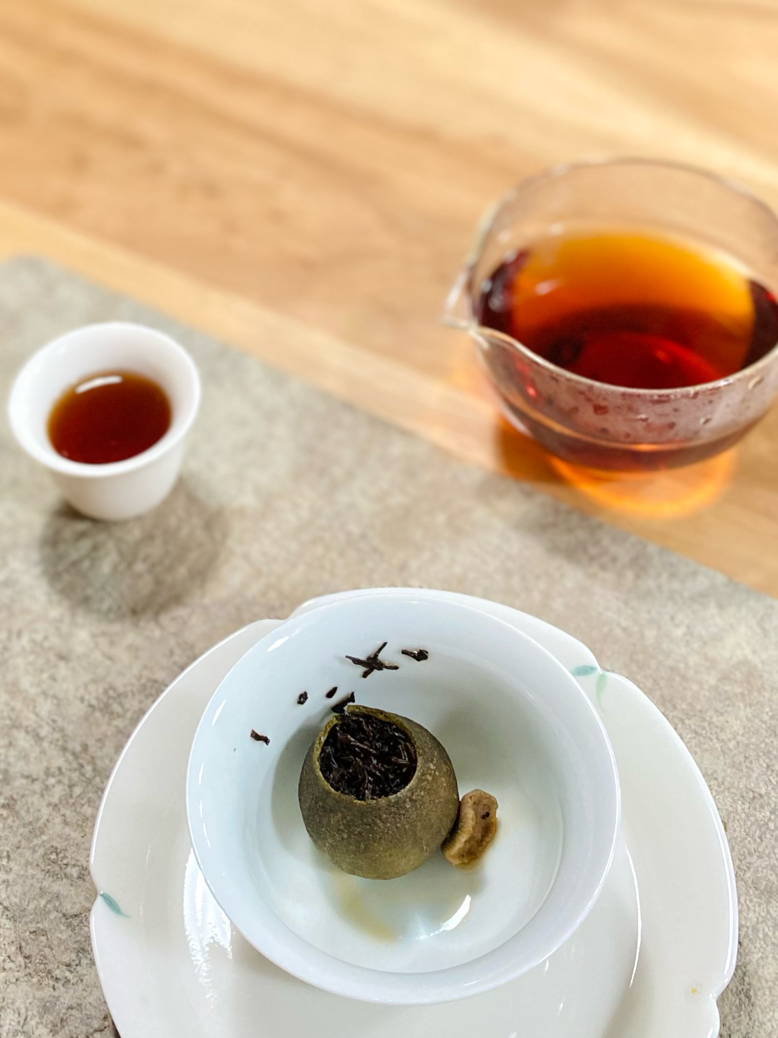 配料:新會小青柑皮、勐海宮廷普洱熟茶