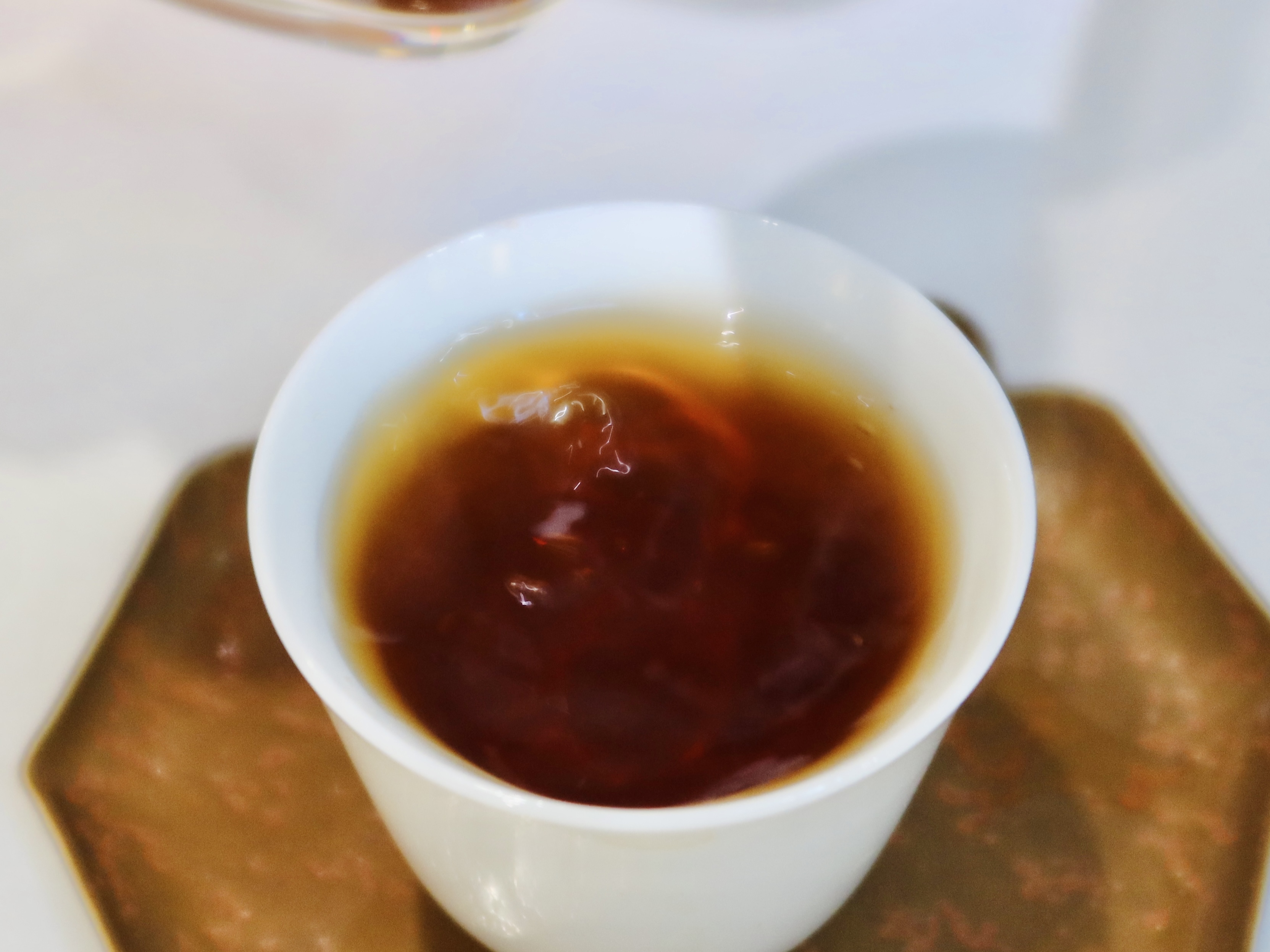 入口氣息乾淨醇厚,陳香綿綿,有花香融合其中,使得茶湯醇厚中帶清爽感。