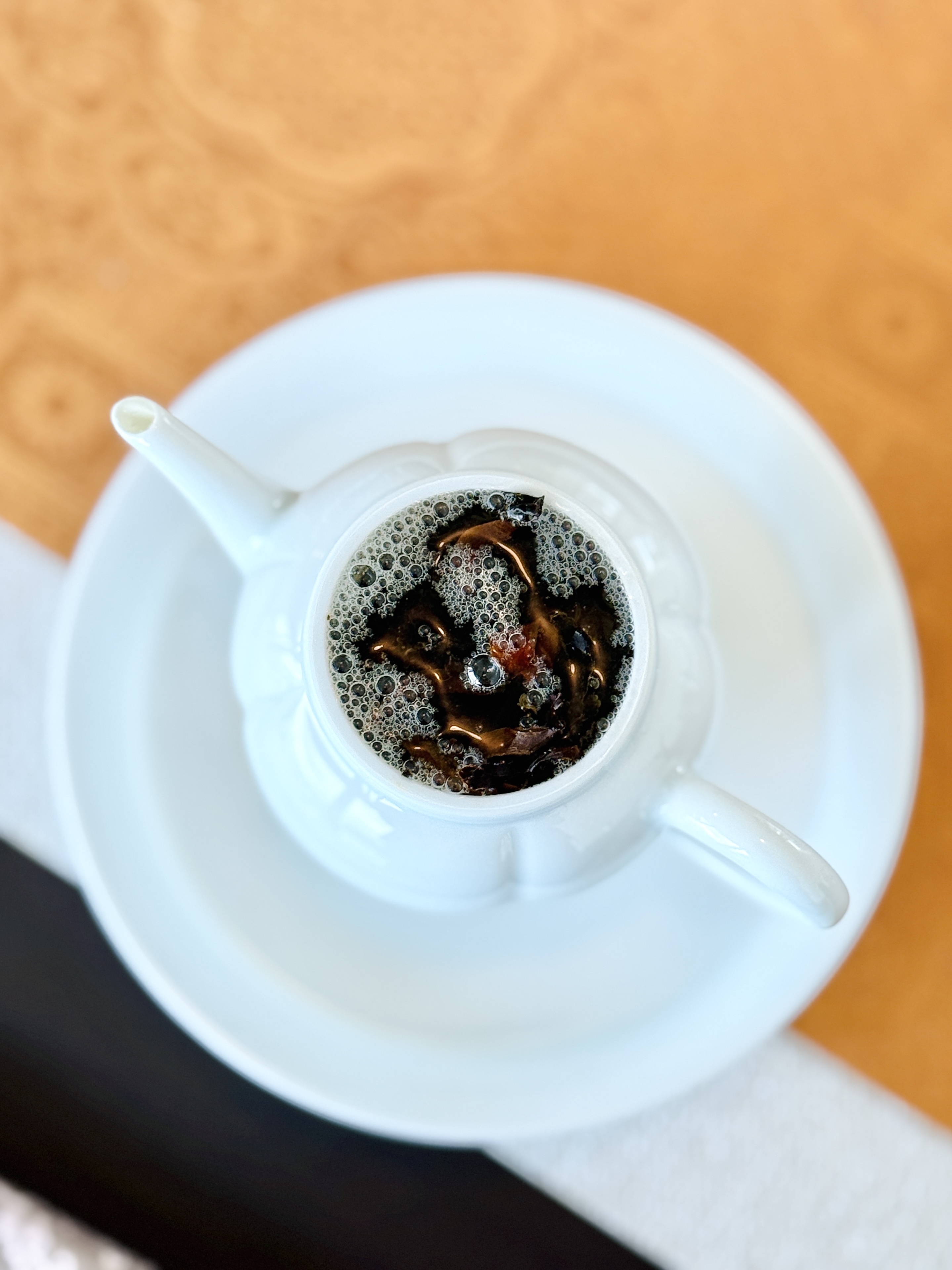 水溫90-95°,可以潤洗一道,即刻出湯棄湯不飲。紅茶是重揉捻重發酵的茶,不建議久悶,前5道15秒內出湯,維持湯色橙黃油亮即可,過後適當延長坐杯時間。
