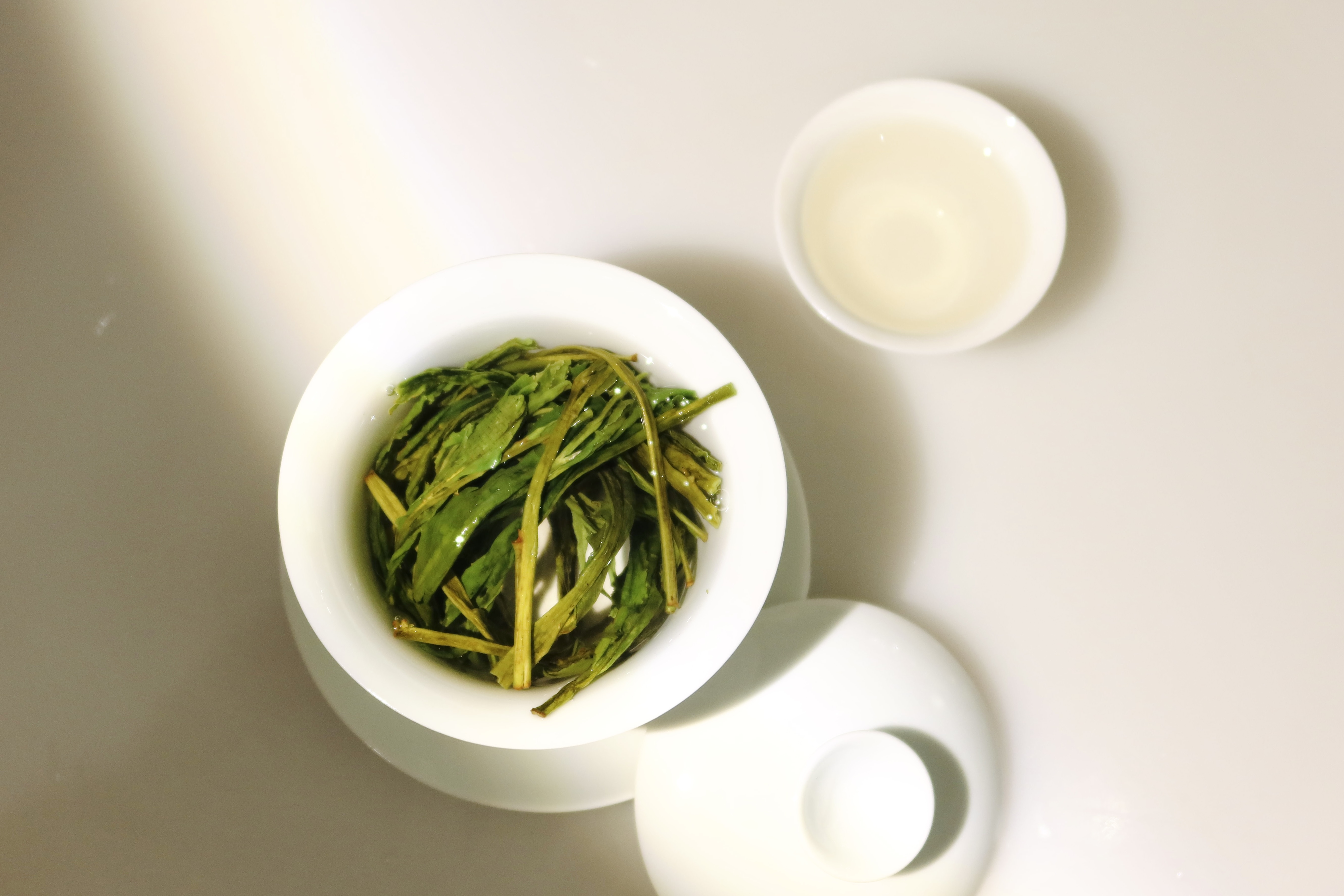 🍃130ml左右蓋碗可投4g,可比一般綠茶高溫泡,讓每一葉片浸潤吸水即可,不易苦澀,沖泡稍隨意,維持湯色清綠即可,四泡有餘香。